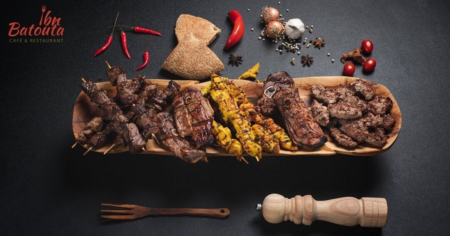 يقدم كافيه ومطعم ابن بطوطة مجموعة متنوعة من الأطباق بما في ذلك وجبات الإفطار والغداء والعشاء، ويتميز بأطباقه التقليدية مثل الطاجين، الكسكسي، المشاوي، والوجبات السريعة.